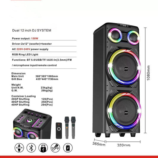Double 12 Inch Portable Wireless Party Speakers Bluetooth Loudspeaker Big Karaoke Stereo Subwoofer Bluetooth Speaker
