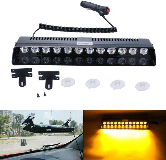 12W 12 Leds Amber Car Emergency Strobe Flash Light Windshield Warning Light