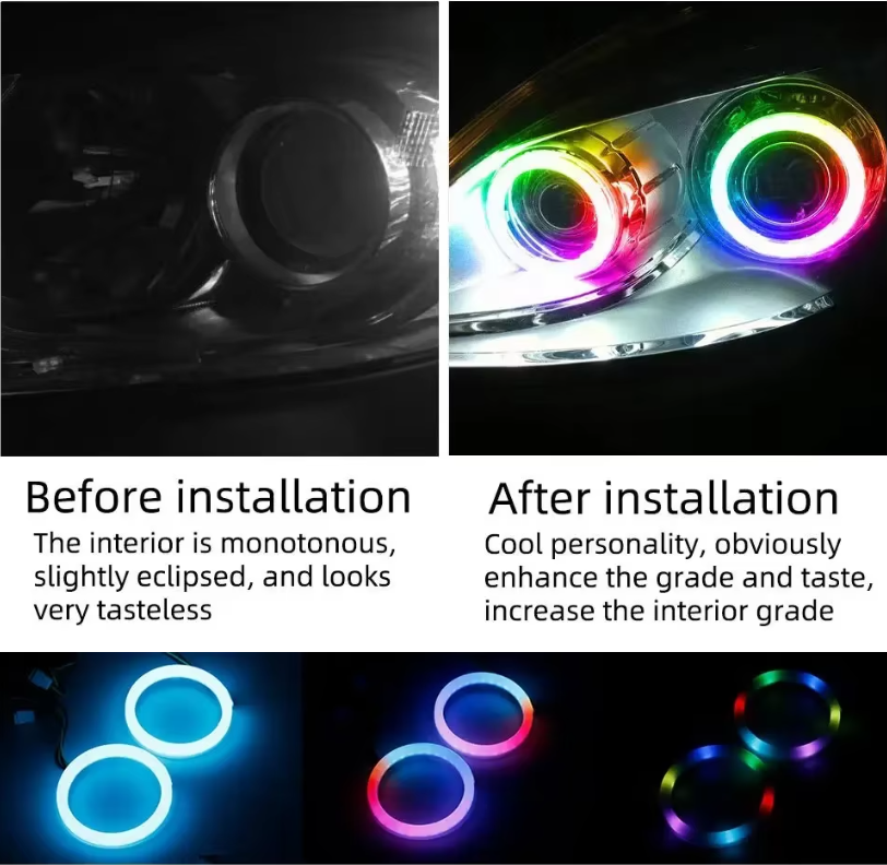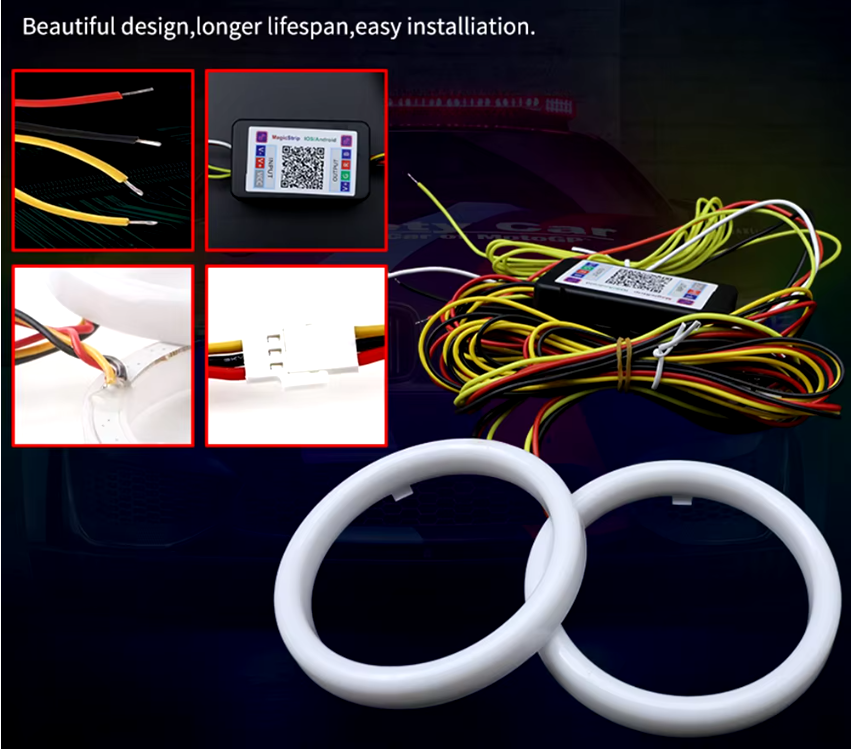 -WIDE APPLICATION: This RGB APP Angel eyes suitable for Car, motorcycle,auto,automotive, Scooter. Can used for angel eyes, fog lamps, day light , led headlight, etc.
