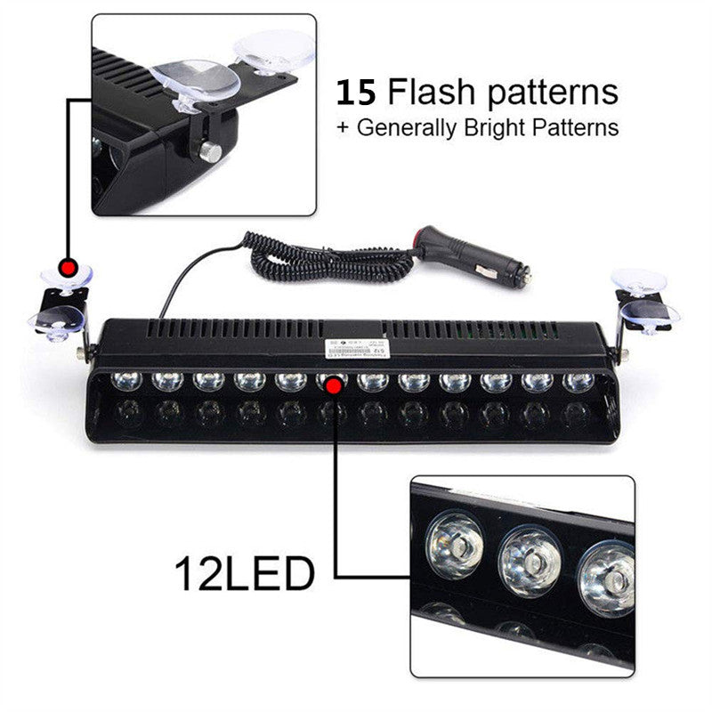 12W 12 Leds Amber Car Emergency Strobe Flash Light Windshield Warning Light