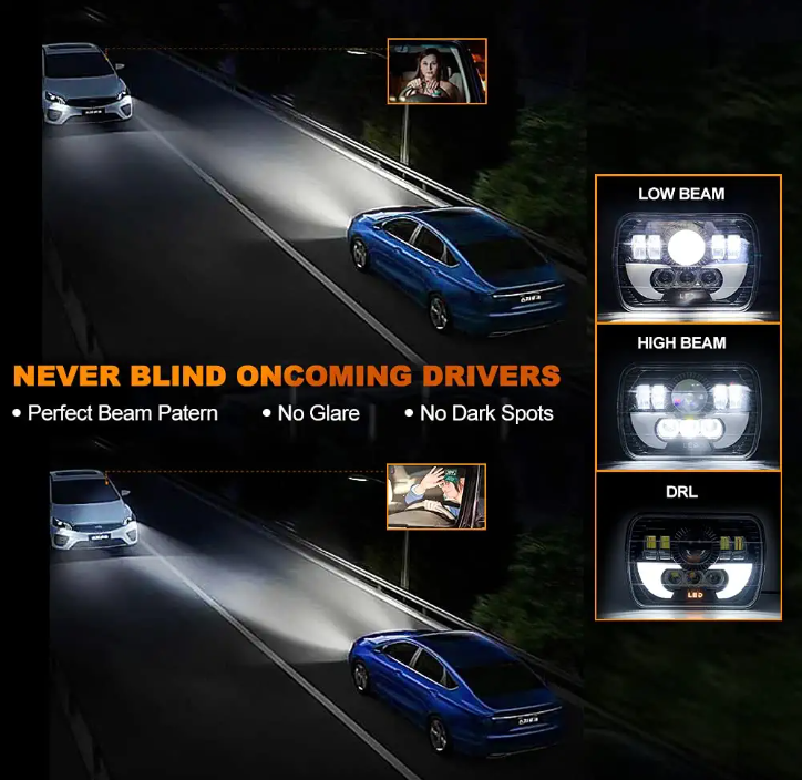 2PCS 5x7 Inch LED Headlights Rectangular Headlamp with DRL High Low Beam Lights