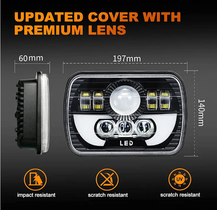 5x7 Led Headlights fit for any vehicles with 7x6 inch sealed beam type headlights (also known as 5x7). Compatible with Jeep Cherokee XJ 1984-2001, Wrangler YJ 1987-1995, Comanche MJ 1986-1992, Chevy S10 Blazer, Chevy Colorado, GMC Savana, etc.