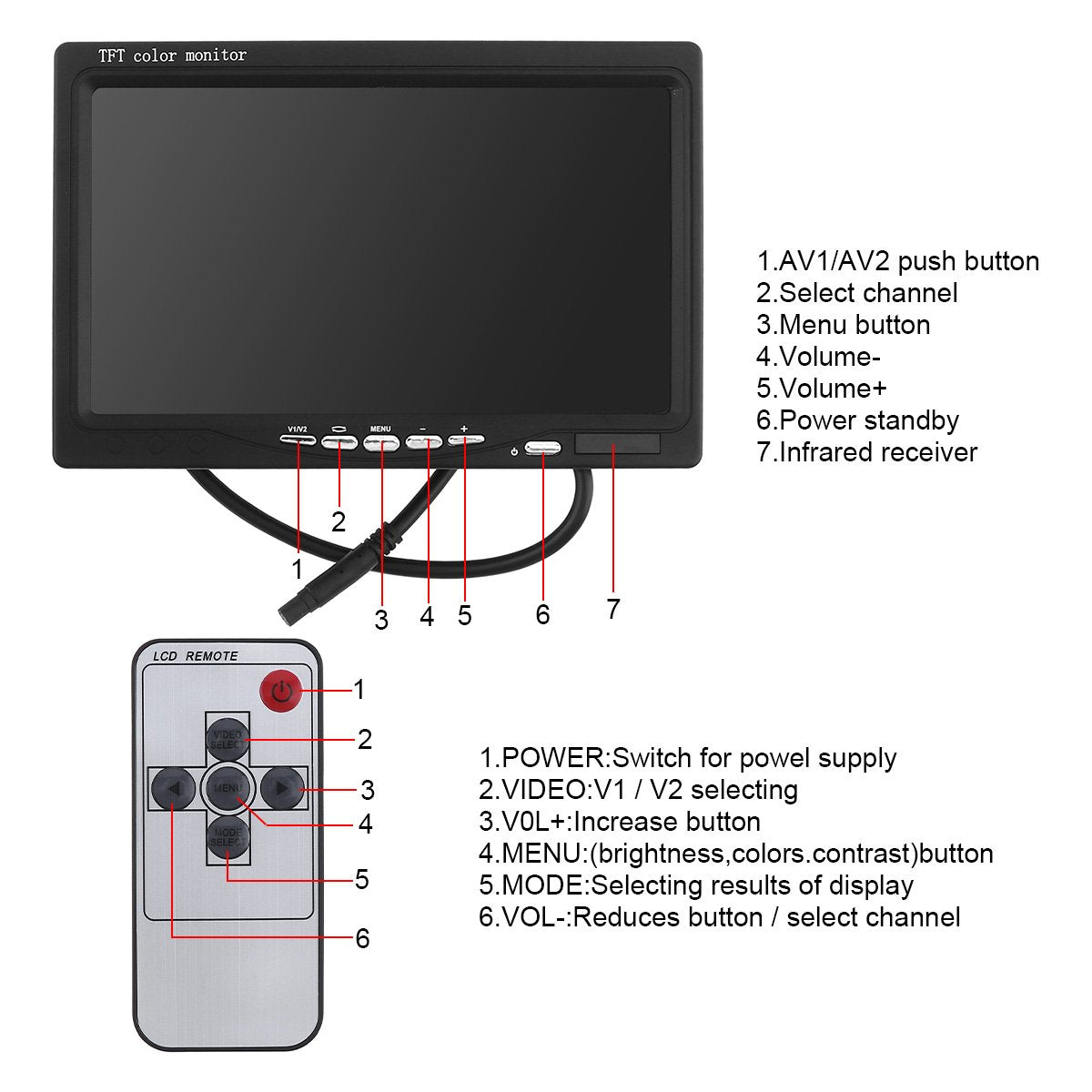 100% BRAND NEW 7 inch Car LCD Monitor helps in preventing accidents while driving inreverse by avoiding children, traffic, pedestrians, toys and pets while backing out of the driveway or parking space.