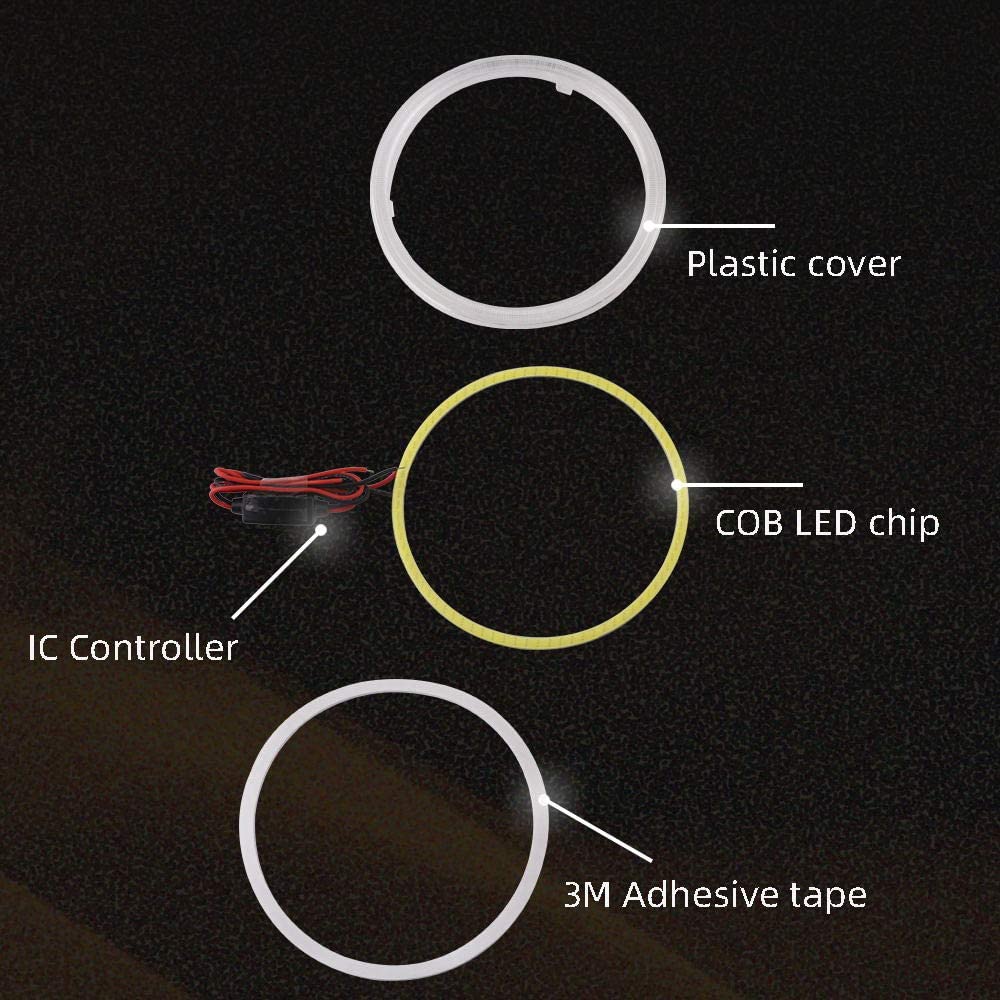 2 Pcs 70mm/80mm/90mm/100mm Car Angel Eyes Led COB Headlight Halo Ring DRL DC 12V