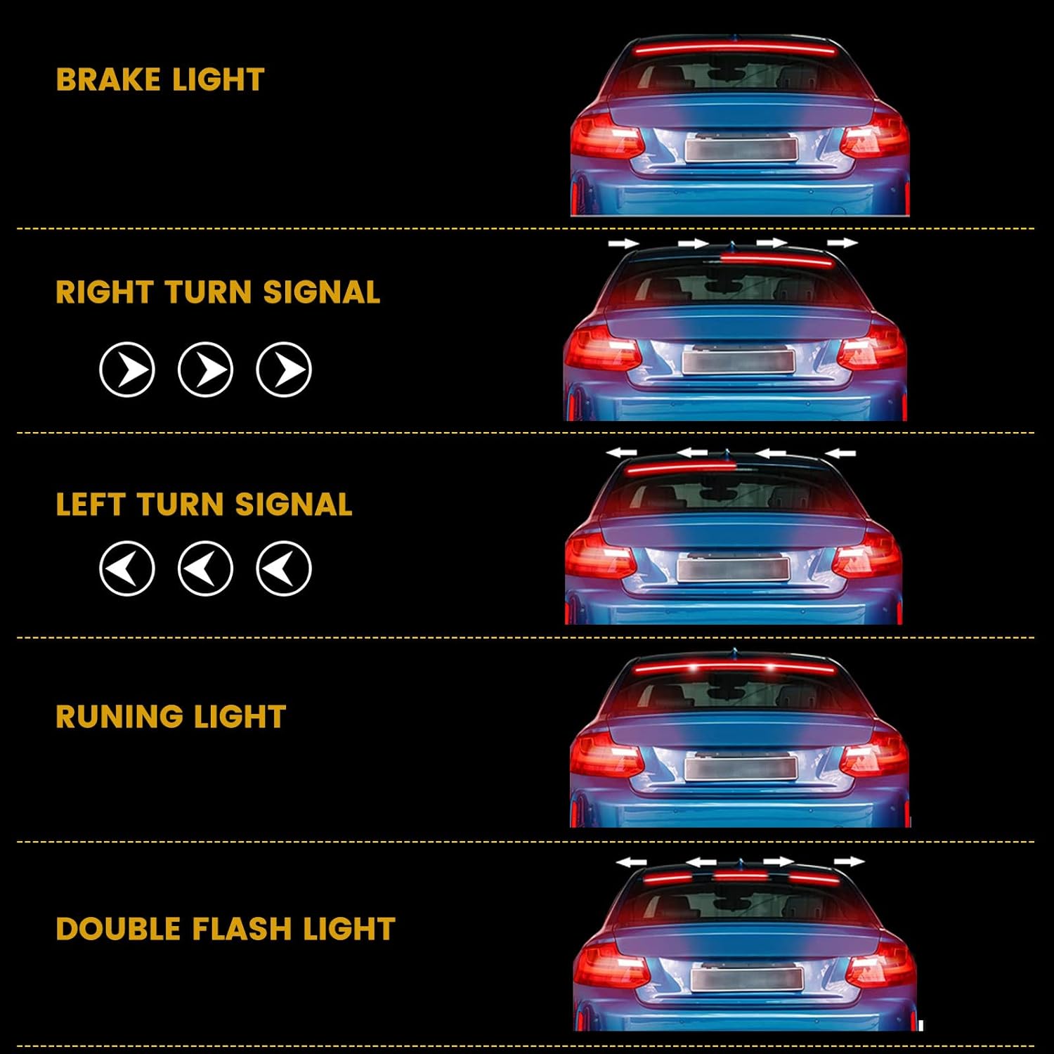 -Multiple Function--Third Brake Light, Driving Strobe Light, Left or Right Turn Signal Light.