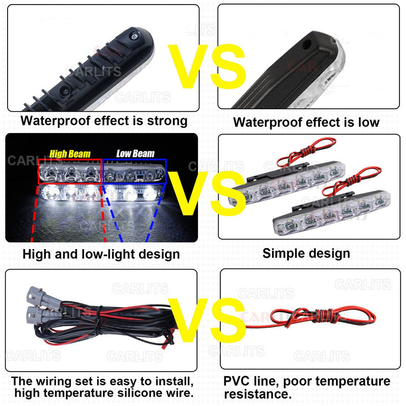 2PCS Car Headlight DRL 6 LED High/Low Beam High Power LED Daytime Running Lights