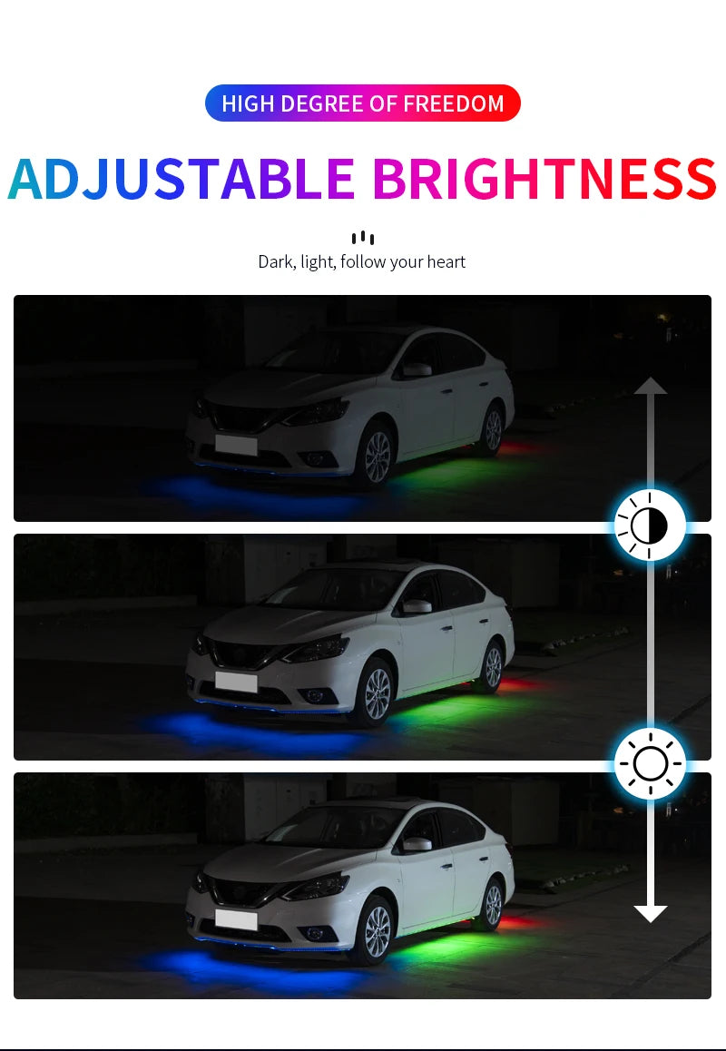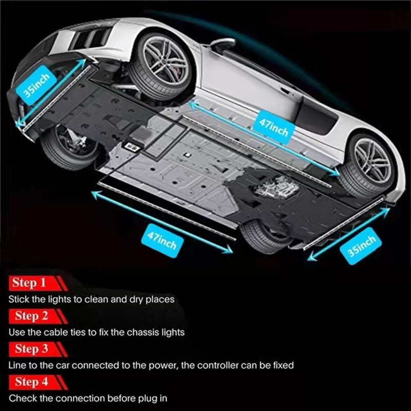 SOUND ACTIVE- The LED under car glow system is equipped with sound sensors that lets the LED lights synchronized with music beat. The LED music light strip follows the beat and adjusts flashing to fit the strength of the sound.