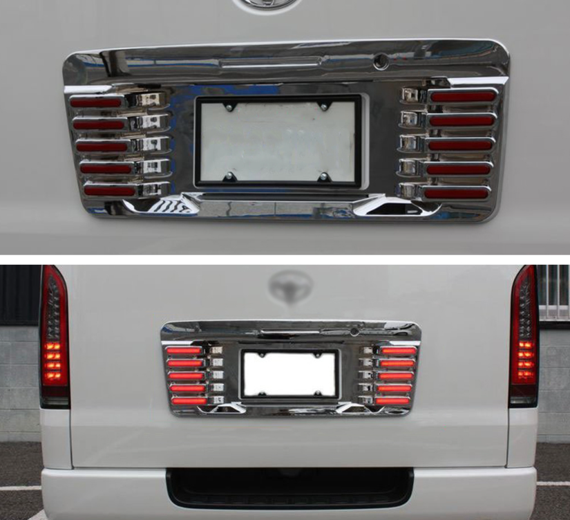EXTERIOR LED LIGHTS REAR AUTO LICENSE BRAKE LIGHTS REAR LAMPS PLATE COVER FIT FOR HIACE 200 2005-2018 LED LICENSE PLATE COVER