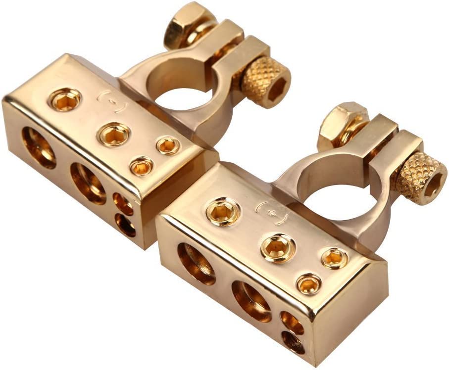 Positive Negative Battery Terminal Platinum Gold Auto Car Gold Plated 2 Pcs