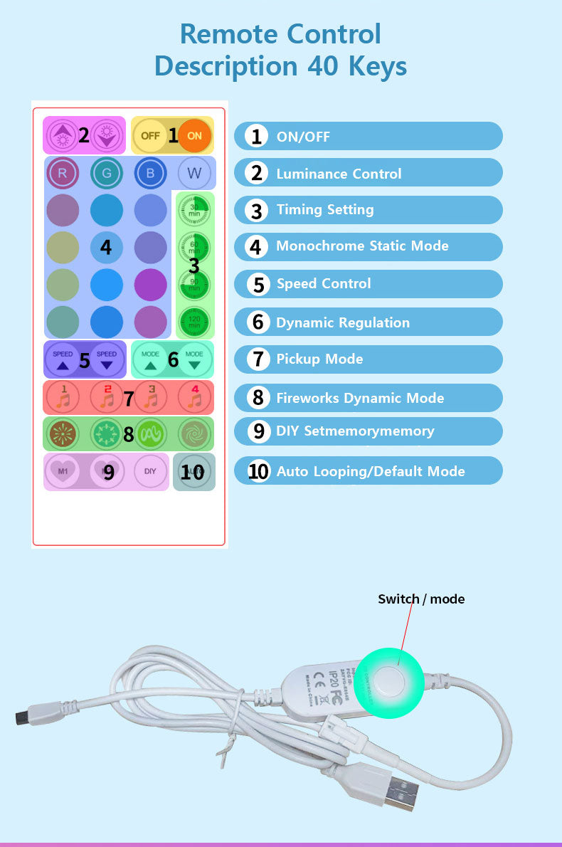 ⭐【 3 Way to Control 】This smart Firework led Lights can be controlled by remote control / APP control / 3-button controller box on USB cable. Super easy to select the colors, change modes, adjust brightness and smart timing. Download the free APP , then connect the led lights to usb power and turn on Bluetooth. Then you can creat your own firework led lights. Perfect led color light for bedroom home room indoor dorm decor.