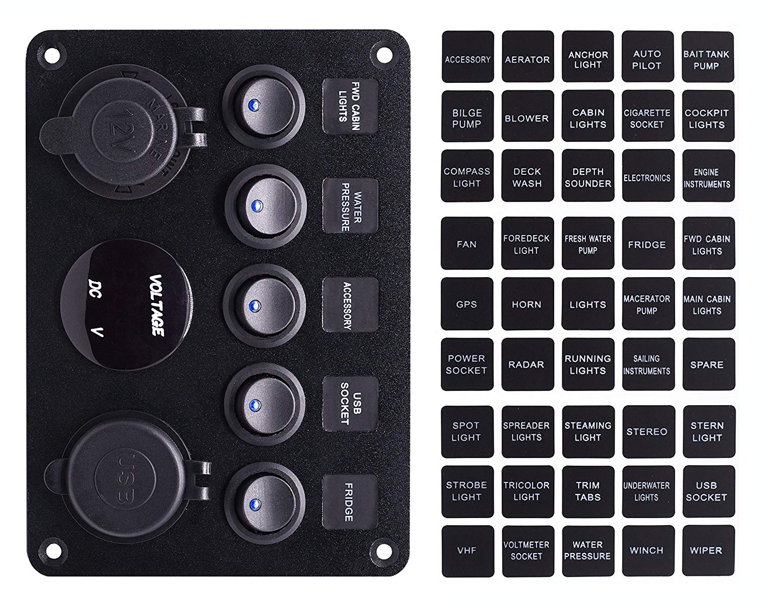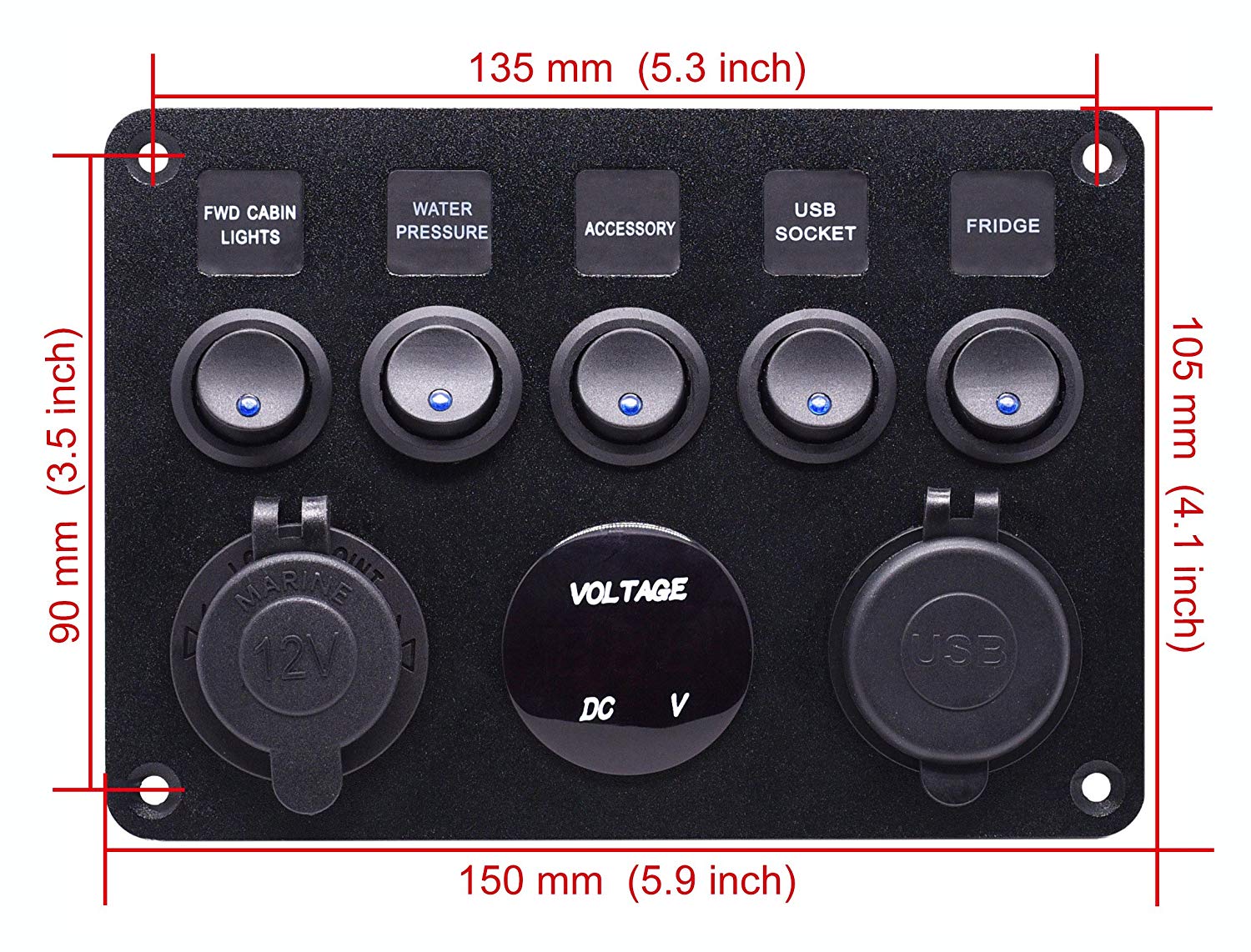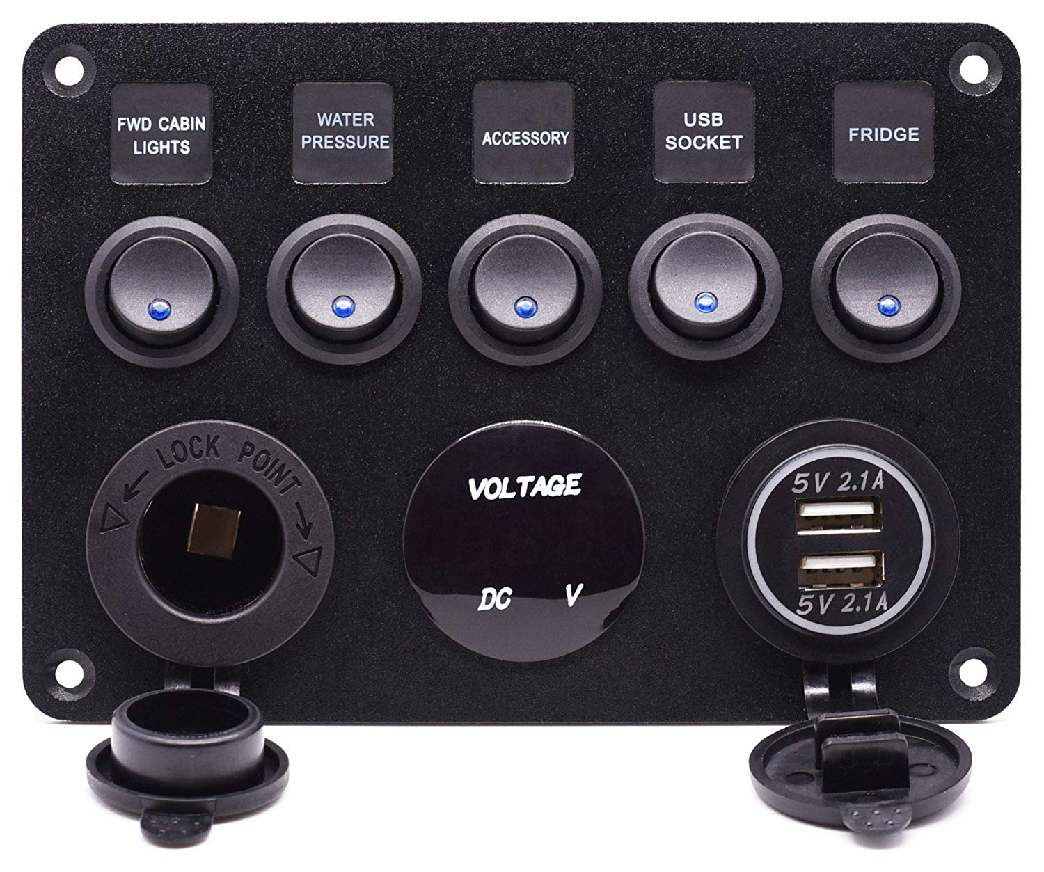 -Multi-Functions Panel; Dual USB Socket + Voltmeter + 12V Outlet + 5 Toggle Switches.